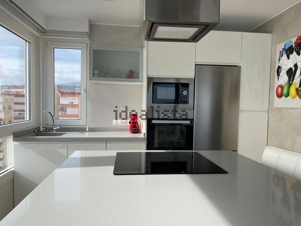 Cocina en isla dentro de un amplio salón acristalado con vistas panorámicas, cocina completa (horno, lavavajillas, microondas, lavadora/secadora, nevera/congelador, cafetera Dolce Gusto, vitrocerámica, campana extractora), 2 dormitorios con aire acondicionado individual y modernas y amplias instalaciones con 2 smart tvs, torre de sonido, wifi comunitario y 1 baño.
