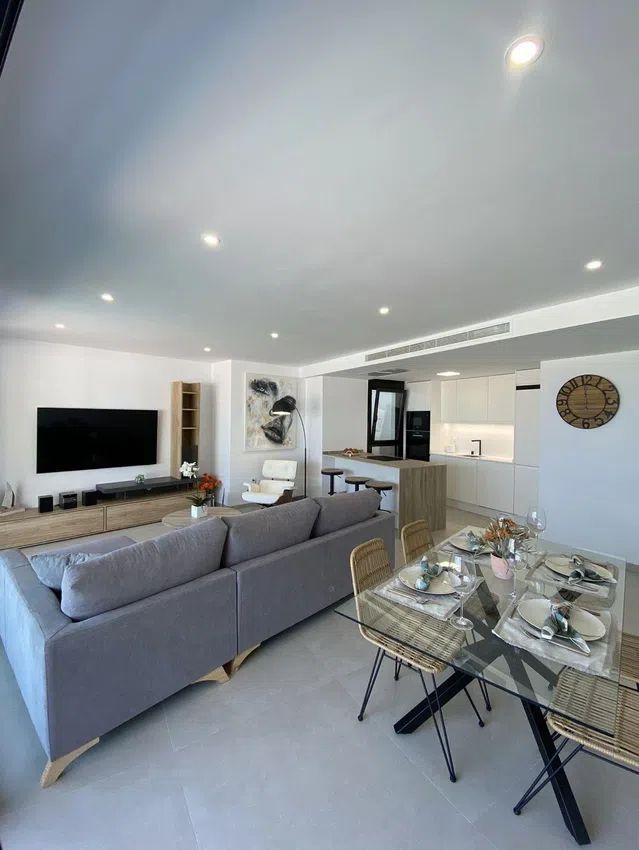Vivienda de lujo completamente amueblada y adaptada con todo lo que necesitas oara una estancia comoda en la playa, dispone de dos dormitorios y dos baños y amplio salon con terraza viendo la playa.