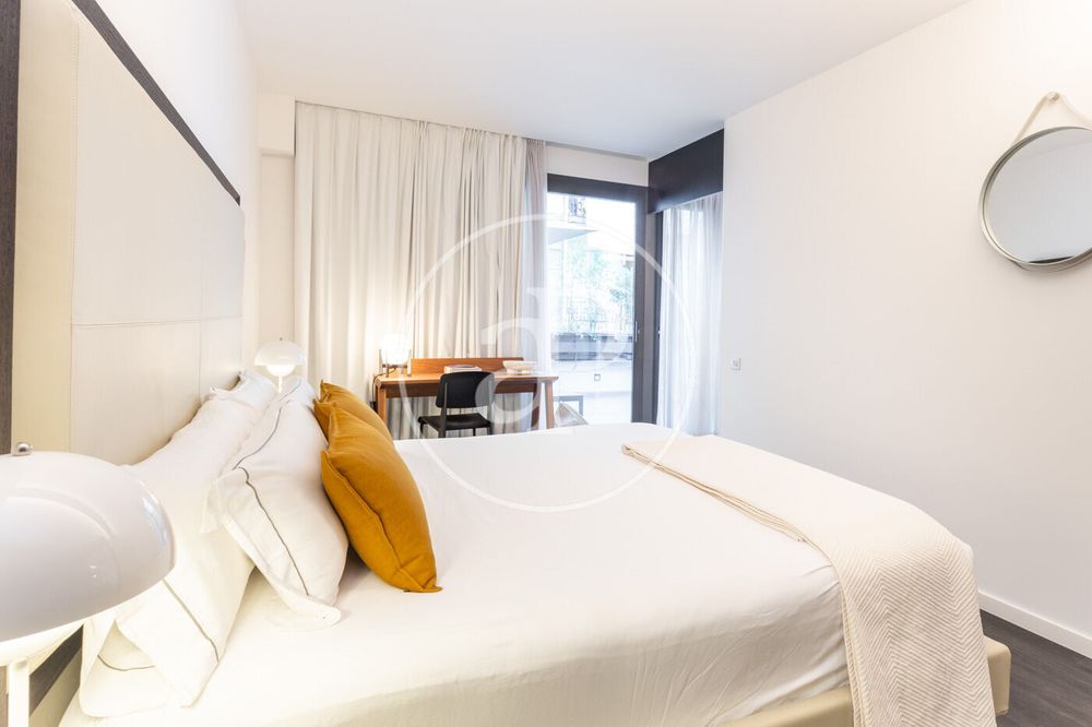 The apartment is located on a quiet, almost pedestrian street next to Paseo de Gracia, La Pedrera, Palau Robert, and near Plaza Catalunya. It is surrounded by the best restaurants and boutiques in the city, right on Passeig de Gràcia. The property, which has 86 m², features a spacious living room and an open kitchen with top-of-the-line finishes in the day area. In the night area, there is the master bedroom, which has a King Size bed and access to a bathroom. The second bedroom has two single beds. The apartment is designed for the maximum comfort of the client. It includes wifi and utilities, along with a weekly cleaning service with linen and towel changes. It has designer furniture and high-end appliances. Concierge service, code key, elevator, parquet floors, high-quality fittings, Apple TV, and a safe are available. The building offers a pool, barbecue area, and chill-out zone on the rooftop. Can you imagine living here?