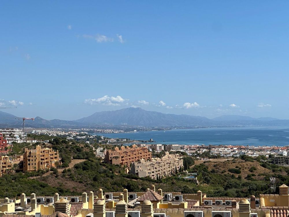 Se alquila Ático de 2 dormitorios, 2 baños, vistas fascinantes al mar, armarios empotrados, cocina totalmente equipada, suelos de mármol, Aire acondicionado central de frío y calor en toda el piso, 2 terrazas dormitorio principal con baño en suite en la urbanización prestigiosa Duquesa Village, seguridad 24 horas, piscina, jardines? Parking subterráneo y trastero, cuenta con ascensor, listo para entrar.