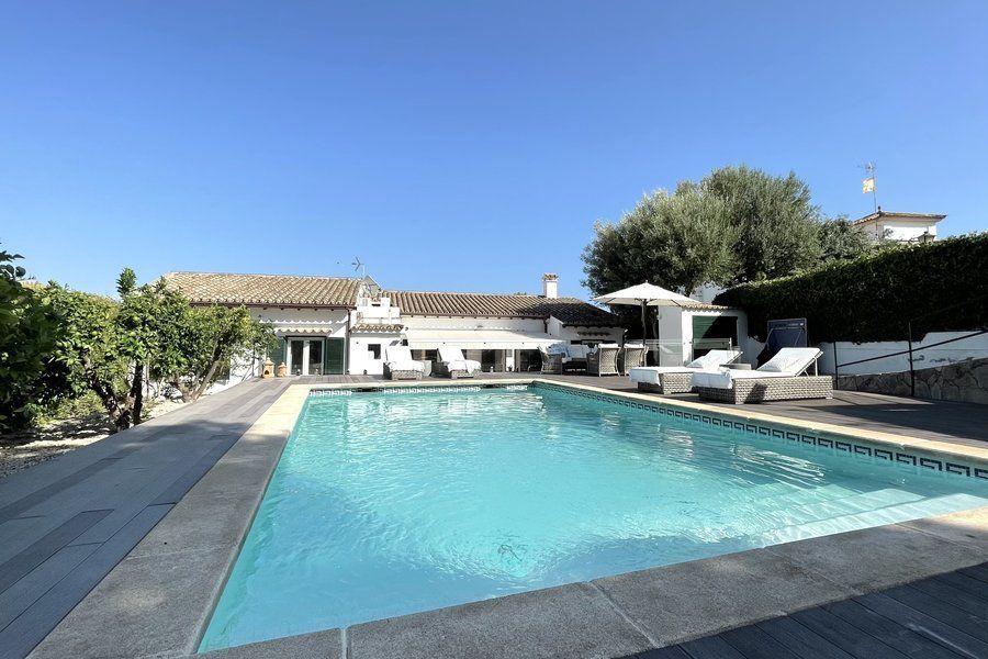 Available for temporary rental. This spacious and very private villa has a large entrance and parking area for several cars on the property. Its wide reaching views, big pool, large chill out area and covered barbecue area make it a quite spectacular place to live. It is very functional and offers 4 bedrooms, 2 bathrooms, a big living area and separate kitchen, all on the same level. The many large terraces around the villa offer a lot of flexibility for indoor/outdoor living around the year. A quiet place, only minutes away from beaches and downtown Palma. Additional features: Air conditioning (hot/cold), internet, pool- and garden maintenance are included in the rental price.