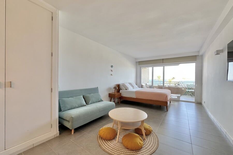 Available for temporary rental. This modern, fully furnished studio is located on the first sea line directly on the beach of Magaluf and offers a rare combination of location, comfort, and style. The bright and tastefully designed apartment features air conditioning (hot/cold), making it suitable for year-round living. The open-plan living and sleeping area is functionally laid out and benefits from large windows that let in plenty of natural light. A special highlight is the private parking space included in the price, which is a real asset in such a sought-after location. Internet access is also included in the rent.