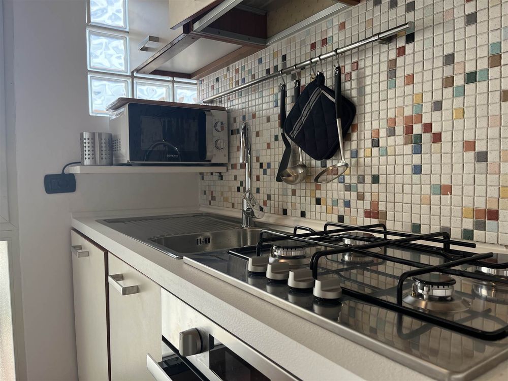L'appartamento di circa 60mq si compone di: zona giorno open space, con divano grande tv Led e cucinotto completamente attrezzato, e dotato di lavastoviglie, frigorifero, macchina del caffè e microonde.