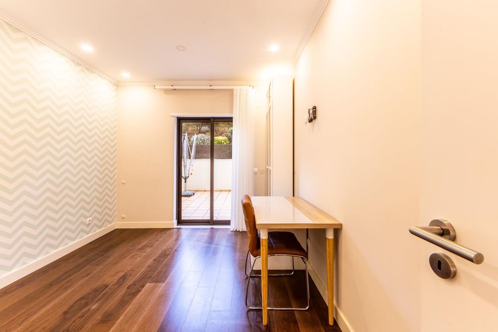 O apartamento tem sala ampla com ligação direta ao exterior através da varanda e terraço, cozinha funcional com boas áreas de arrumação que é apoiada por outro terraço. Tem 3 quartos, uma suíte, 2 quartos com um W.C de apoio e inclui também dois lugares de estacionamento, já com instalação para o carregamento de veículos elétricos, em garagem comum e uma arrecadação. Tem uma piscina de apoio.