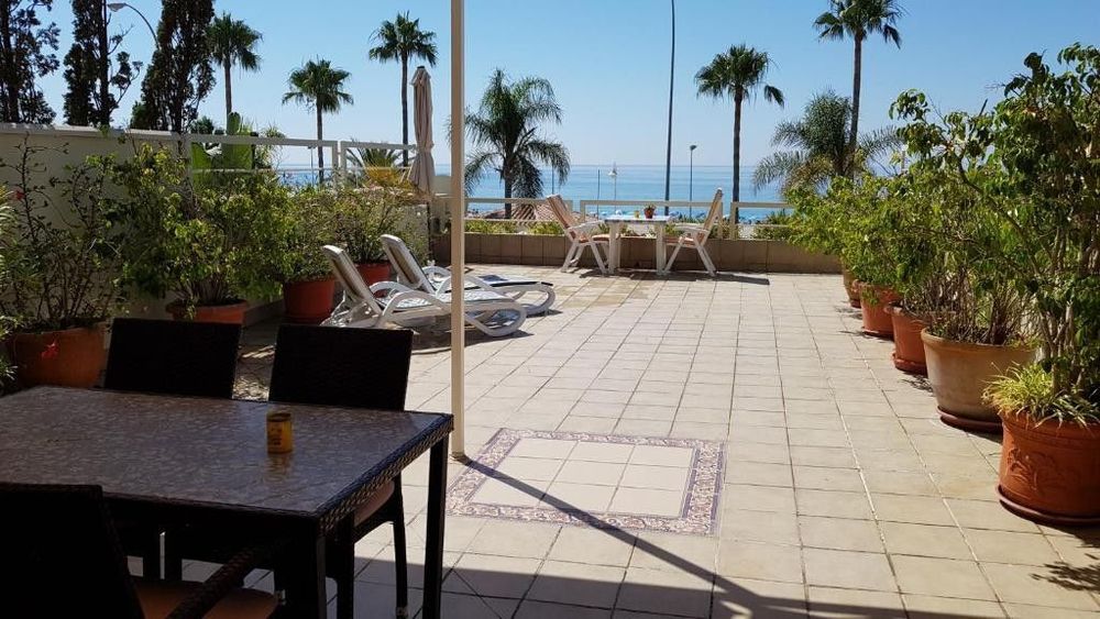 APARTMENT ON THE FIRST LINE OF PLAYA BURRIANA, CONSISTS OF TWO BEDROOMS AND TWO BATHROOMS, MASTER BEDROOM WITH DOUBLE BED AND BATHROOM AND ANOTHER WITH TWO SMALL BEDS, BATHROOM, LIVING ROOM, AMERICAN KITCHEN, AIR CONDITIONING AND WIFI. IT HAS A LARGE 90M² TERRACE WITH AN AWNING, TABLE WITH CHAIRS AND SUNBEDS, WITH IMPRESSIVE SEA VIEWS