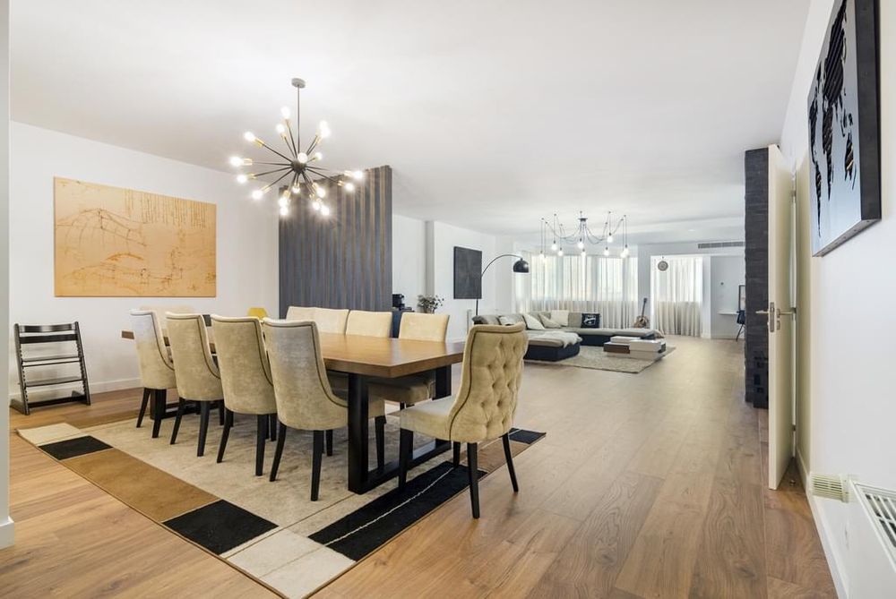Ao entrar no apartamento, somos recebidos por uma entrada elegante que se estende até à ampla sala de estar. A sala, inundada de luz natural, destaca-se pela lareira acolhedora e pelas vistas desafogadas da cidade. A cozinha, totalmente equipada e integrada com uma sala de jantar espaçosa, cria o ambiente perfeito para entretenimento e convívio.