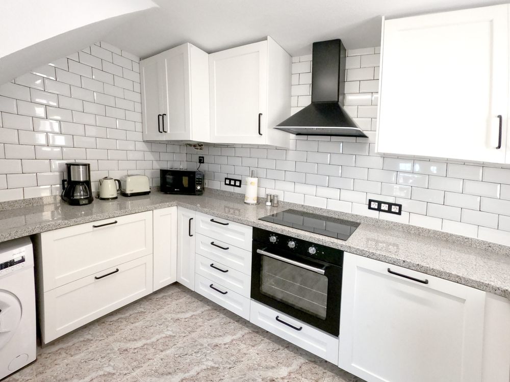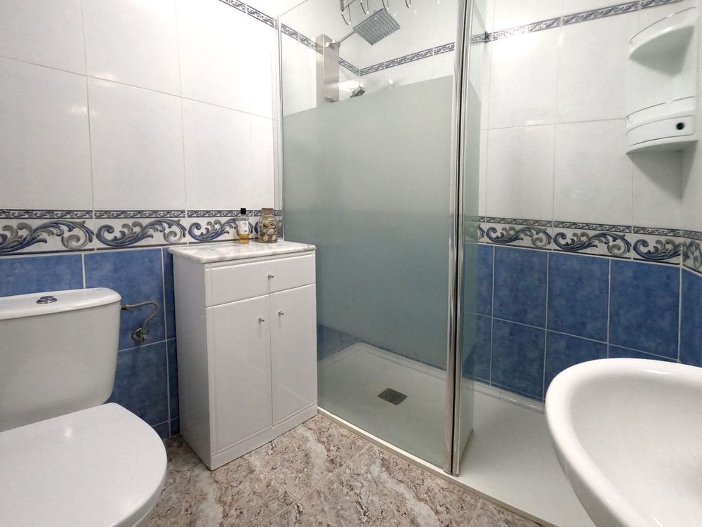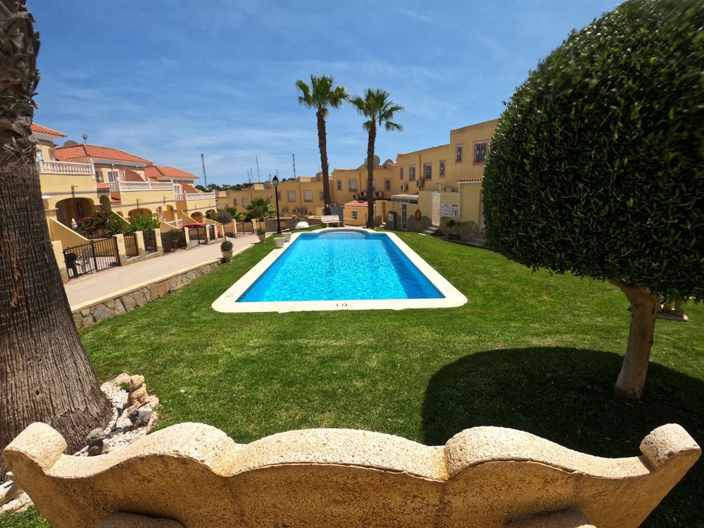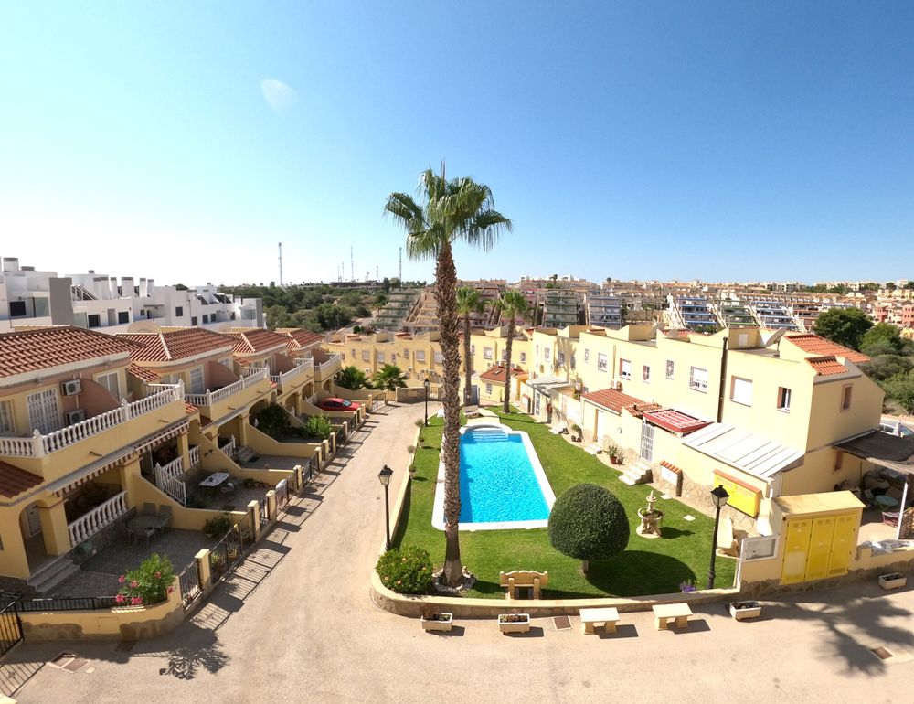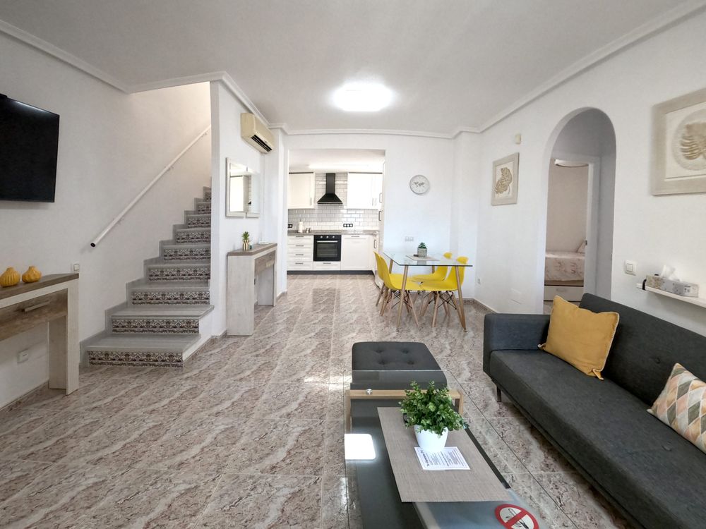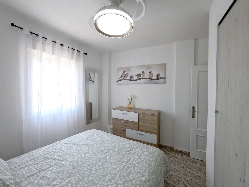 A two bedroom top floor apartment with views of the Mediterranean Sea. This apartment is modern and has been furnished to a very high standard. It has a large private solarium with sunbeds, a sun umbrella and dining table with chairs to enjoy al fresco meals. Wi-Fi is included, as well as air-conditioning in the lounge and modern ceiling fans in the bedrooms. La Zenia Boulevard is just a short distance away and the golden blue flag beaches of the Orihuela Costa are close by. There are numerous bars and restaurants within walking distance of the property, and Villamartin Golf Course and The Plaza are just a short stroll away. The complex has one large swimming pool within the grounds.