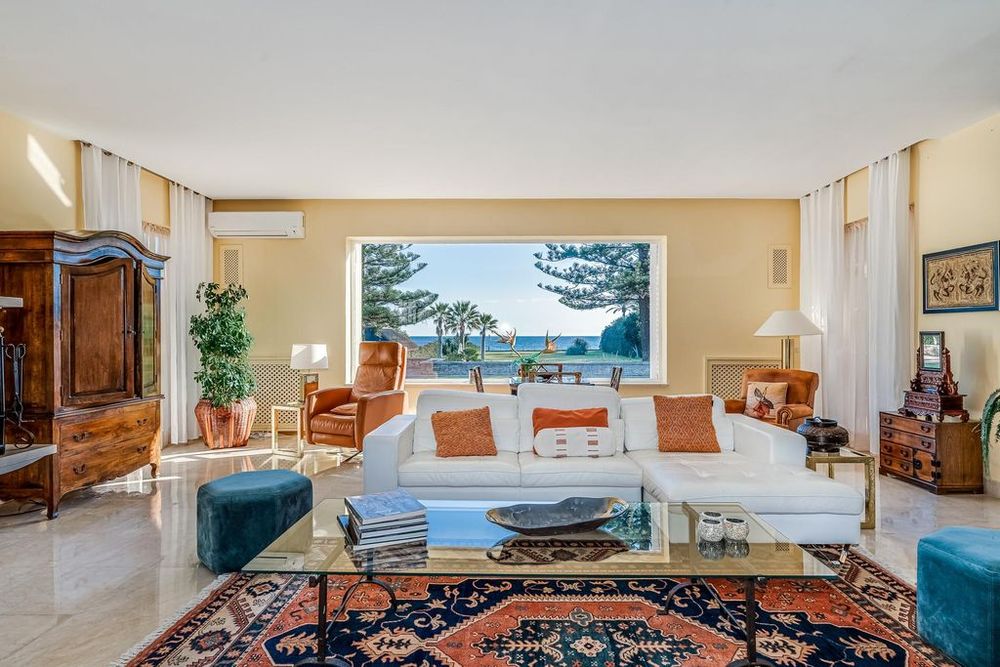 This stunning beachfront villa stands out with its expansive 9,000m2 plot of beautifully manicured gardens, a private tennis court, and a heated swimming pool complete with a bar area and a sauna. The Andalusian and Mediterranean style of the villa harmoniously blends with the surrounding scenery, creating a captivating atmosphere. Notably, the plot extends all the way to the beach, granting direct access to the pristine shoreline.