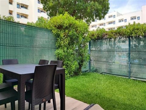 No r�s-do-ch�o encontrar� uma kitchenette equipada, um wc de servi�o com duche, uma espa�osa sala e um jardim exterior privado