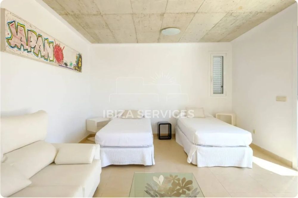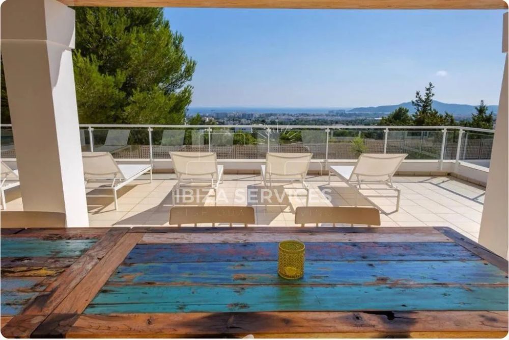 Desde la villa se puede disfrutar de vistas panorámicas al mar, Salinas, Playa d’en Bossa y al emblemático castillo de Ibiza. El entorno es tranquilo y privado, con acceso cercano a playas, servicios y puntos de interés.