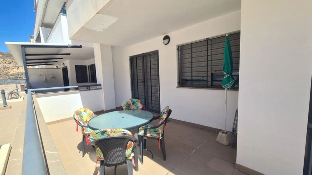 Urb. El Pinar de Garrucha, vivienda en planta baja, 2 dormitorios (capacidad para cuatro personas) dispone de dos baños completos, cocina americana equipada de menaje y electrodomésticos, terraza privada que se accede desde el salón y dormitorio principal, dispone de mesas y sillas de jardín, plaza de parking subterránea.