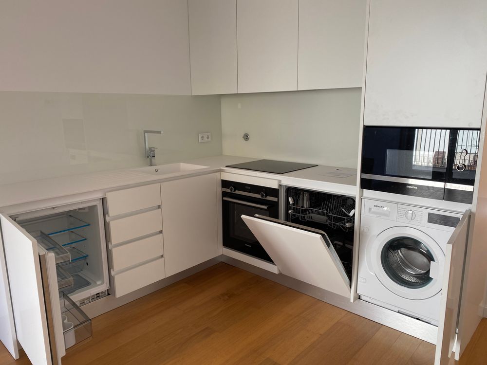 O apartamento é constituído por uma Sala com cozinha em open-space equipada com os seguintes eletrodomésticos Siemens: forno, placa, exaustor, frigorífico, máquina de lavar a loiça e máquina de lavar a roupa.