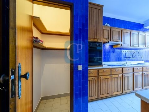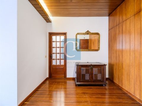 O pavimento � em madeira maci�a na zona social e cer�mico na cozinha, lavandaria e quartos de banho. O apartamento tem caixilharia com vidros duplos, porta blindada, intercomunicador, disp�e de um lugar de garagem e dois elevadores.