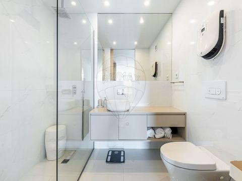 ??2 casas de banho completas + 1 W. C. de servi�o com loi�as "Porcelanosa".
