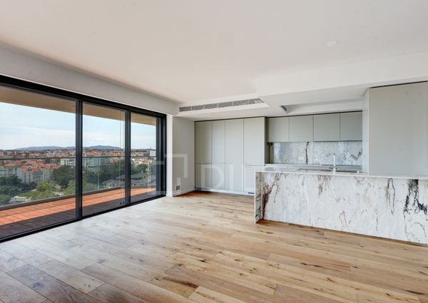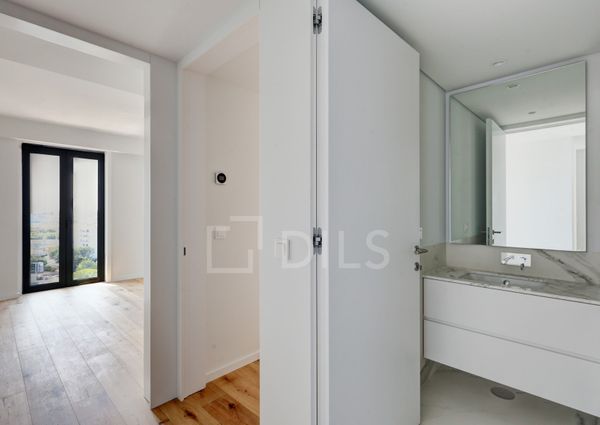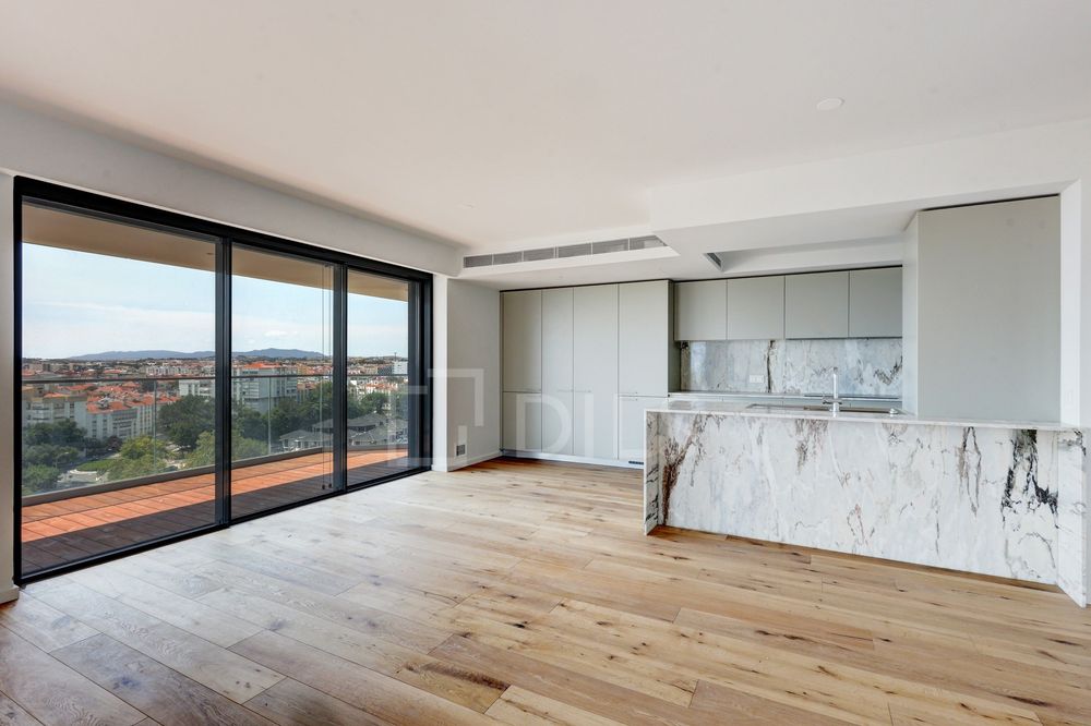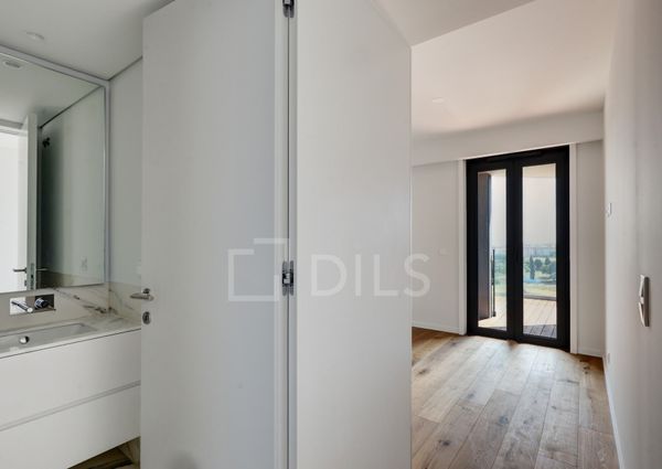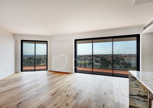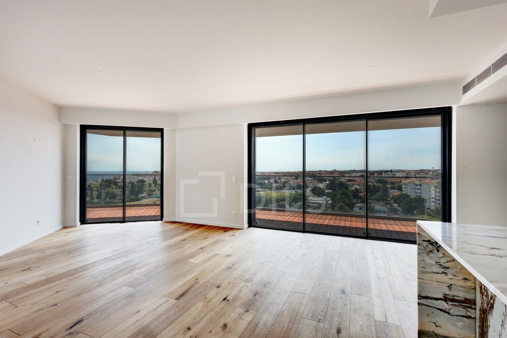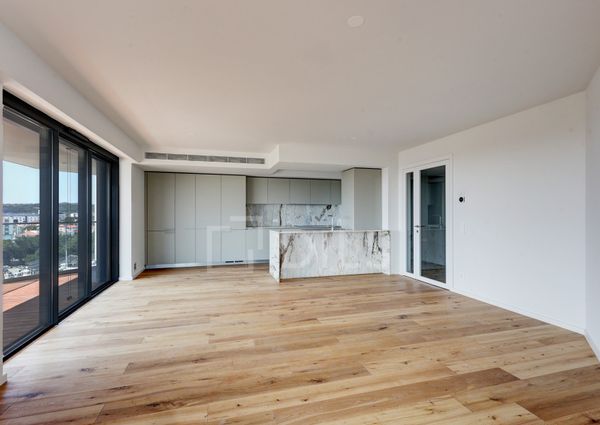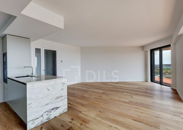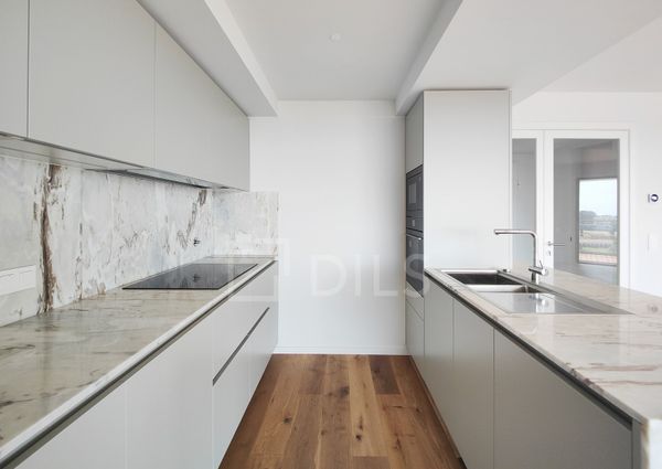 ApartamentoT3, a estrear para arrendamento, com cerca de 190,61 m2 de área bruta com vista panorâmica para o estuário do Tejo, 2 lugares de estacionamento e arrecadação.