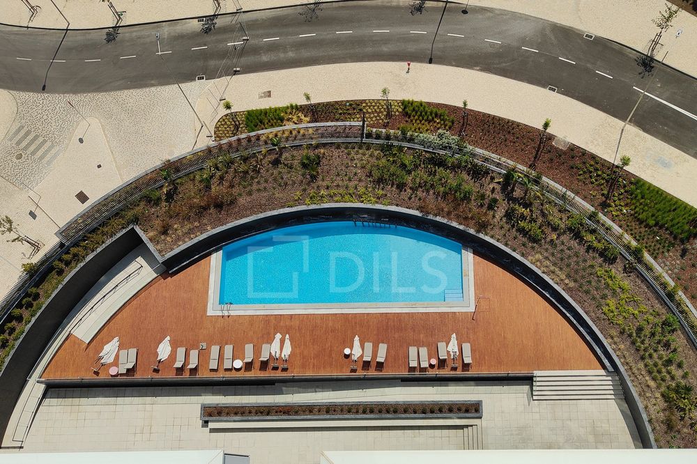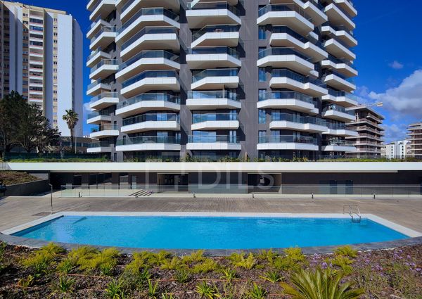 Inserido no condomínio Torre Girassol do empreendimento Jardim de Miraflores, em Algés, dispõe ainda de piscina, ginásio e jardim, proporcionando conforto e lazer aos residentes.