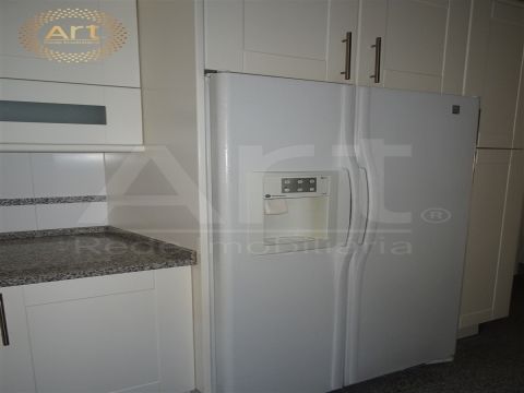 Composto por um Hall de entrada com 7m2 com acesso � cozinha e � sala. A cozinha tem 22m2, pavimente em granito, m�veis brancos lacados, ar-condicionado, encontra-se totalmente equipada, contem uma despensa e ainda acesso direto � zona de lavandaria com 10m2.