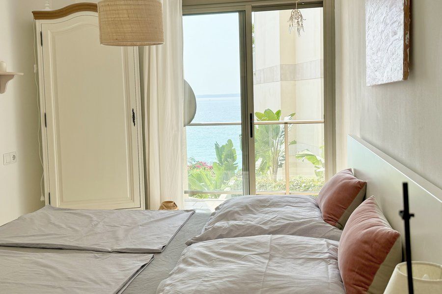 Available for temporary rental. One-room apartment with terrace in a prime location directly on Playa Major. The apartment is furnished and fully equipped, has a modern design and offers direct sea views. Ideal for those who want to enjoy the proximity to the beach and the Mediterranean flair.