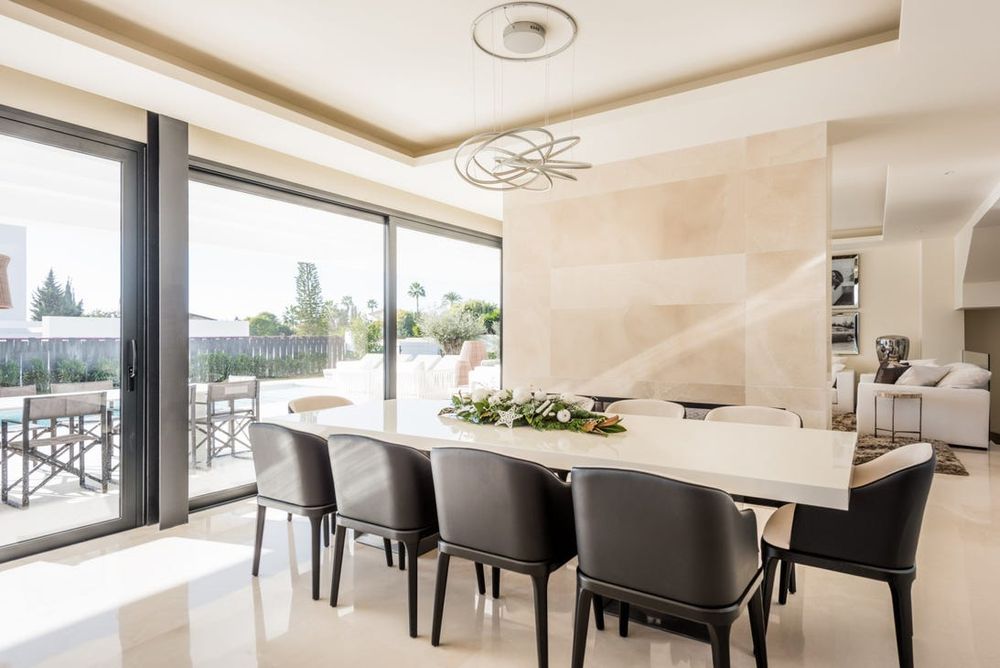 This splendid 4-bedroom villa is a stunning showcase of modern elegance and refined taste. Perfectly designed to blend luxury and comfort, this property is a sanctuary where contemporary design meets sophisticated living. The villa boasts a generous 470 m of living space set on a plot of 1, 200 m, surrounded by lush greenery and overlooking breathtaking views of the garden and pool.From the moment you step inside, you are greeted by the expansive and sunlit living areas, adorned with large glass doors that seamlessly connect the indoors to the meticulously designed outdoor spaces. The villa features a thoughtfully planned open-plan kitchen, fully equipped with state-of-the-art appliances, which opens onto a spacious dining area perfect for hosting family gatherings or intimate dinners. Adjacent to the kitchen is a sleek living room, enhanced by a cozy fireplace, ideal for relaxing evenings.Each of the four bedrooms is a private haven, complete with fitted wardrobes and en-suite bathrooms, providing comfort and tranquility. The master suite stands out with its spacious layout and direct access to the terrace, where you can enjoy the serene garden views. The villa also includes a dedicated guest room, ensuring that everyone has their own personal space.Outside, the expansive 110 m terrace leads you to a refreshing private swimming pool, surrounded by lush gardens and mature landscaping. Here, youll find both covered and uncovered terraces, allowing you to enjoy the Mediterranean climate throughout the year. The villas private garden has an automatic irrigation system, ensuring the lush greenery remains vibrant and well-maintained.For those who value wellness and leisure, this villa is equipped with an array of impressive amenities. A fully outfitted gym, a relaxing sauna, and a home cinema provide everything you need for entertainment and relaxation within the comfort of your home. The villa also features a smart home automation system, underfloor heating, and air conditioning throughout, enhancing comfort and convenience.Situated close to the vibrant town of Estepona, the villa provides easy access to pristine beaches, world-class golf courses, top-rated schools, and an array of amenities. Whether youre enjoying a day by the pool, a stroll on the beach, or a round of golf, this villa places you right at the heart of Costa del Sols most sought-after lifestyle experiences.