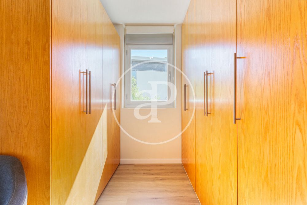 Aproperties presents this beautiful semi-detached villa of 237 m² on a 500 m² plot, located on the front line of the golf course in the exclusive El Bosque residential area. The property stands out for its brightness, thanks to large windows that open out to the garden and offer mountain views. It blends a modern yet warm style. On the main floor, there is a modern semi-open kitchen with large windows and direct access to the terrace and garden, as well as space for a breakfast table. Next is the living-dining room, which opens onto a magnificent terrace with views of the golf course. On the first floor, the property features two double bedrooms. One includes an en-suite bathroom, a walk-in wardrobe, and access to a large terrace. There is also another bedroom with built-in wardrobes and a full bathroom. Both bedrooms and the main living area are equipped with ducted air conditioning. The lower floor offers a spacious living room with large windows and direct access to the terrace and garden, two double bedrooms, a full bathroom, and a practical laundry room. All rooms, including the living area, benefit from natural light through large windows. One of the bedrooms, currently used as an office and gym, opens to the terrace and garden. The other has access to a charming English patio, providing excellent natural light. The home enjoys a magnificent southeast orientation, ensuring sunlight throughout the day. It also features ducted hot/cold air conditioning, laminate parquet flooring on the upper floor, and built-in wardrobes in the bedrooms. Outside, there is a parking area that can be covered or open, depending on preference, as well as a lovely garden with natural grass and a small vegetable patch. The communal areas include a year-round swimming pool, paddle tennis court, and children’s playground. The exclusive El Bosque residential area is just 20 km from Valencia and is located next to one of Spain's most renowned golf courses. It offers private security, a tennis club, equestrian center, social club, Olympic swimming pool, and several dining options. The area is classified as being of landscape interest. It's a privileged and peaceful setting, ideal for year-round living due to its proximity to the city of Valencia. Just a few kilometers from the estate, you’ll find a supermarket, pharmacy, and a prestigious international school. A perfect choice for those seeking an exclusive home in a natural, secure environment close to the city. If you would like more information or wish to schedule a visit, please don’t hesitate to contact us — we’d be delighted to assist you.