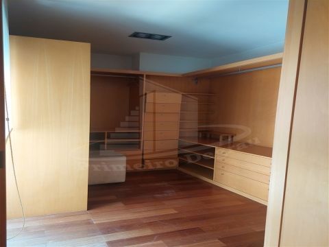 �duas su�tes, uma delas com closet, al�m de um quarto adicional, todos com roupeiros embutidos. Ainda neste piso, wc de apoio com banheira.