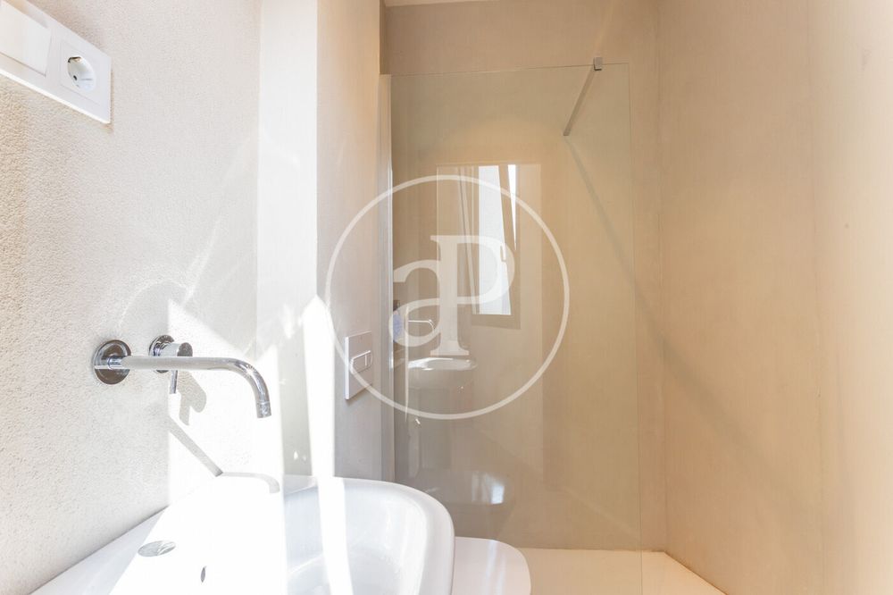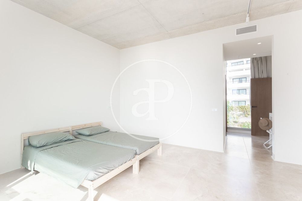 An impressive entrance hall with high microcement ceilings that distributes the day areas. Large 80 m² living-dining room with floor-to-ceiling windows that flood the space with natural light and open onto a 177 m² terrace overlooking the Mediterranean Sea, plus a double room ideal for service quarters or guests.