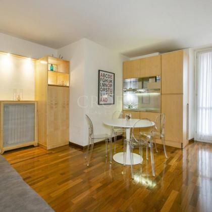 We present a unique opportunity to live or invest in the heart of the Eternal City. This splendid fourth-floor, two-room apartment captures the essence of Roman living. The spacious and bright living room with a kitchenette is characterized by an elegant exposed wooden-beamed ceiling that adds warmth and character to the space. The living area features a comfortable red sofa that adds a vibrant touch of color, alongside a delightful dining table perfect for breakfasts and dinners.