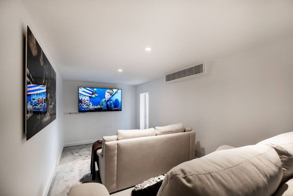 ENTERTAIN WITH STYLE AS YOU ENJOY DOLBY STEREO SURROUND SOUND THROUGHOUT THE VILLA. THE CINEMA ROOM AND GAMES ROOM PROVIDE ADDITIONAL SPACES FOR RELAXATION AND RECREATION. THE UNDERFLOOR HEATING IN BATHROOMS, CEILING COOLING, AND HEATING SYSTEMS FURTHER CONTRIBUTE TO THE LUXURIOUS FEEL OF THE PROPERTY. TAKE IN BREATHTAKING SEA VIEWS FROM THE BALCONY OR ENJOY THE TRANQUILITY OF GARDEN VIEWS IN THIS GATED COMMUNITY. THE VILLA IS IN EXCELLENT CONDITION, METICULOUSLY MAINTAINED TO MEET THE HIGHEST STANDARDS OF LIVING. SECURITY IS A TOP PRIORITY WITH AN ALARM SYSTEM AND THE ADDED CONVENIENCE OF ELECTRIC AND GAS HEATING. SITUATED BEACHSIDE, THIS VILLA OFFERS THE PERFECT BLEND OF COASTAL CHARM AND OPULENT LIVING. WITH A LAUNDRY ROOM, INTERNET ACCESS, AND PROXIMITY TO THE TOWN, THIS PROPERTY MEETS EVERY NEED FOR A SOPHISTICATED AND CONVENIENT LIFESTYLE.