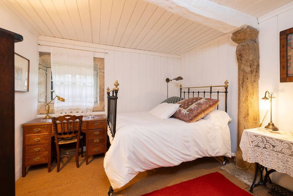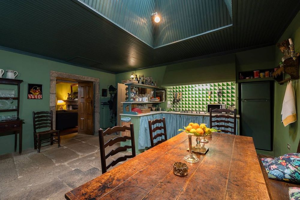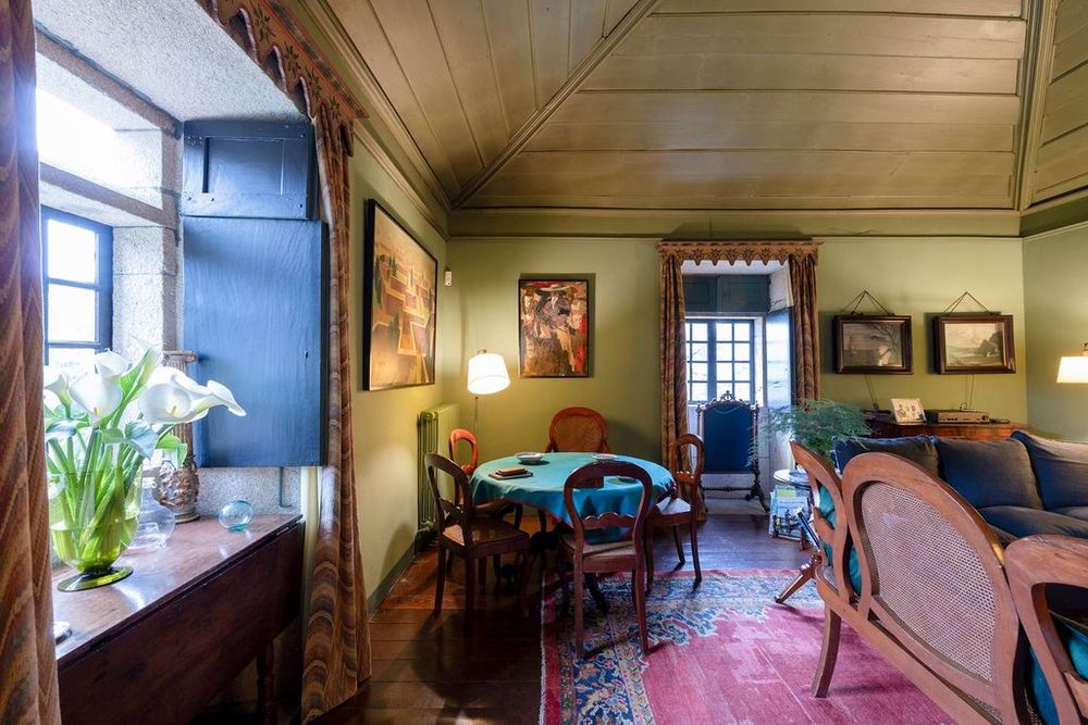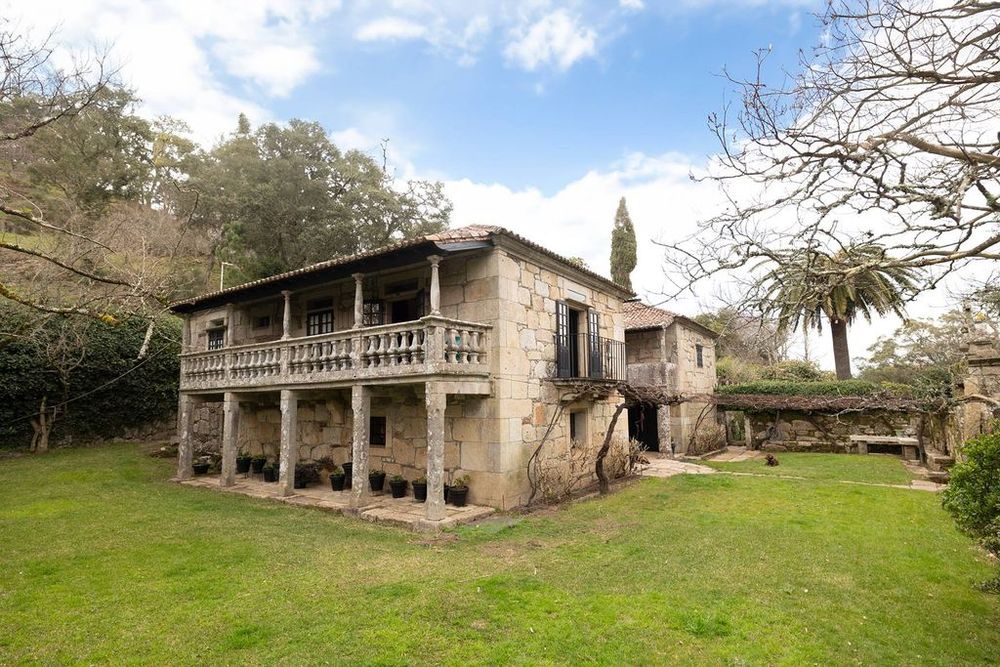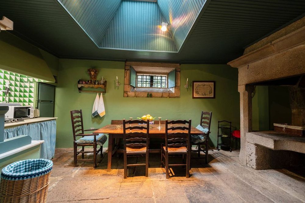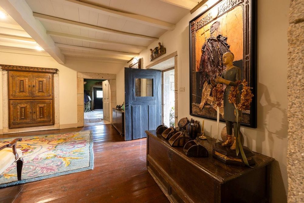 The property has four main bedrooms and two secondary ones, with a capacity for twelve people. Two magnificent lounges, with stone balconies, a fantastic stone fireplace, and ceilings with original wooden coffered ceilings, create a unique atmosphere. The kitchen, in an open space with a dining area, surprises with its typical Galician lareira, cozy and charming, equipped with everything necessary for daily life.