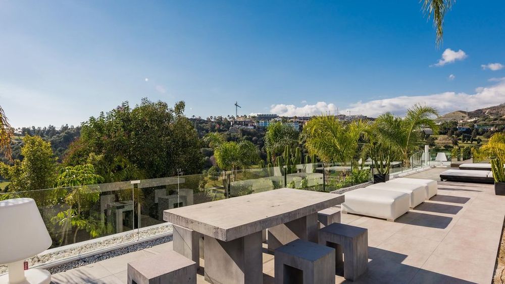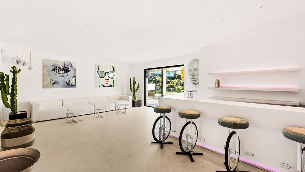 In addition to the 7 suites, this unique villa boasts 2 guest rooms, a double-height living room, a relaxation area with a bar around the heated swimming pool, a conference room, and a cinema room. Words simply cannot describe the qualities, views, and complexity of this stunning villa. iPhone control of the entire villa- from lighting or sound to heating or cool colors. The entrance level has room for 4 cars.