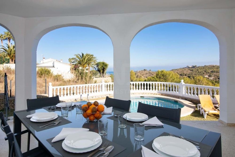Detached single-storey house with sea views in Denia For rent: beautiful single-storey detached house in Denia, located just a few minutes drive from both the sea and the town centre. The property enjoys a privileged location, combining the peace of a residential area with the convenience of being close to shops, restaurants, services and the sandy beaches of the Costa Blanca. Bright and spacious, the house features three large bedrooms with built-in wardrobes, a generous living-dining room with direct access to the outdoors, and a modern open-plan kitchen fully equipped with high-quality appliances. The living room opens onto a charming covered terrace with lovely views of the sea, the garden and the swimming pool. The outdoor area is one of the highlights of this property: a well-maintained garden, sunny and shaded spaces to relax, and a completely private pool that ensures moments of leisure and enjoyment in total privacy. The plot offers open views, free from immediate neighbours, guaranteeing a true sense of peace and disconnection. This property is perfect for families or for anyone looking for a residence in a safe, natural and quiet environment while staying close to all urban amenities. The monthly rent is 2, 500, plus 250 per month for the maintenance of the garden and pool, ensuring the home and its surroundings remain in perfect condition at all times. A unique opportunity to live in a Mediterranean-style house that combines comfort, functionality and a privileged setting in Denia.