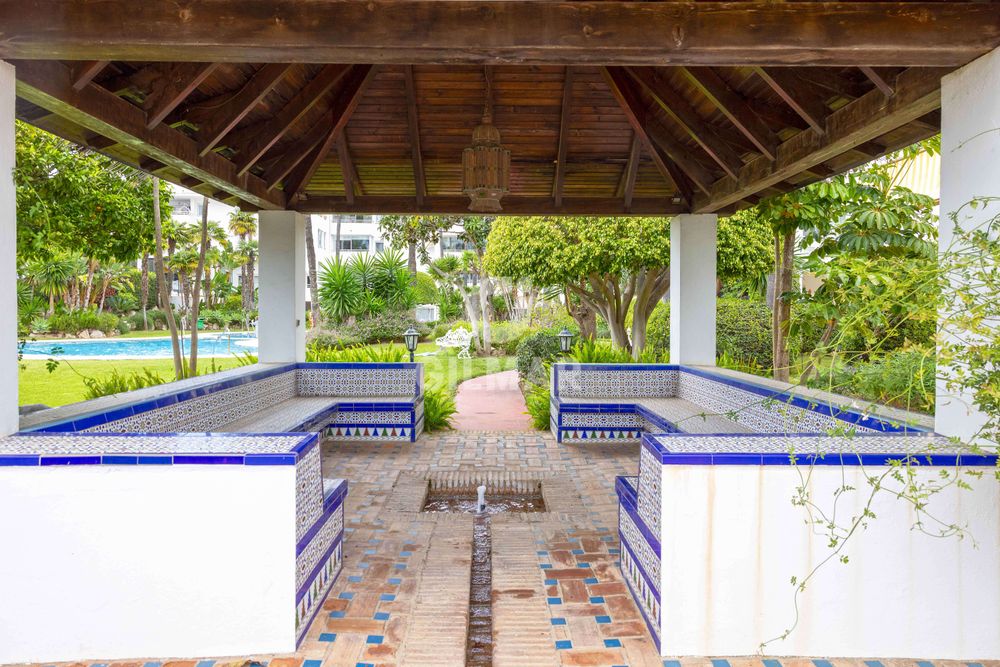 Ubicado en la conocida zona de Atalaya, a tan sólo un par de minutos de San Pedro de Alcántara, en urbanización cerrada con impecable perfil de vecindarios, seguridad 24h, servicio de conserjería, piscina comunitaria, servicio de helicóptero médico jardines bien cuidados, sala de billar y zona de estar.