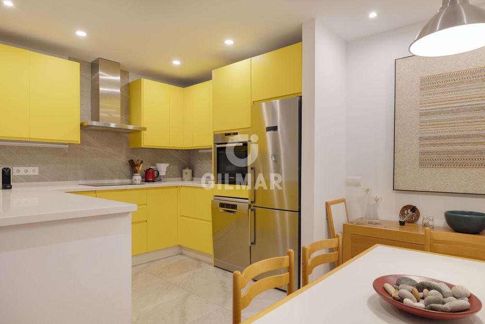 El apartamento recientemente reformado consta de amplio hall recibidor, cocina abierta al salón con zona amplia de comedor y completamente equipada con electrodomésticos de alta gama, zona de estar rodeada de ventanales con acceso directo a gran terraza cubierta y jardín comunitario de uso privativo, dos amplios dormitorios, el principal con zona de vestidor y baño en suite y otro baño completo con plato de ducha.