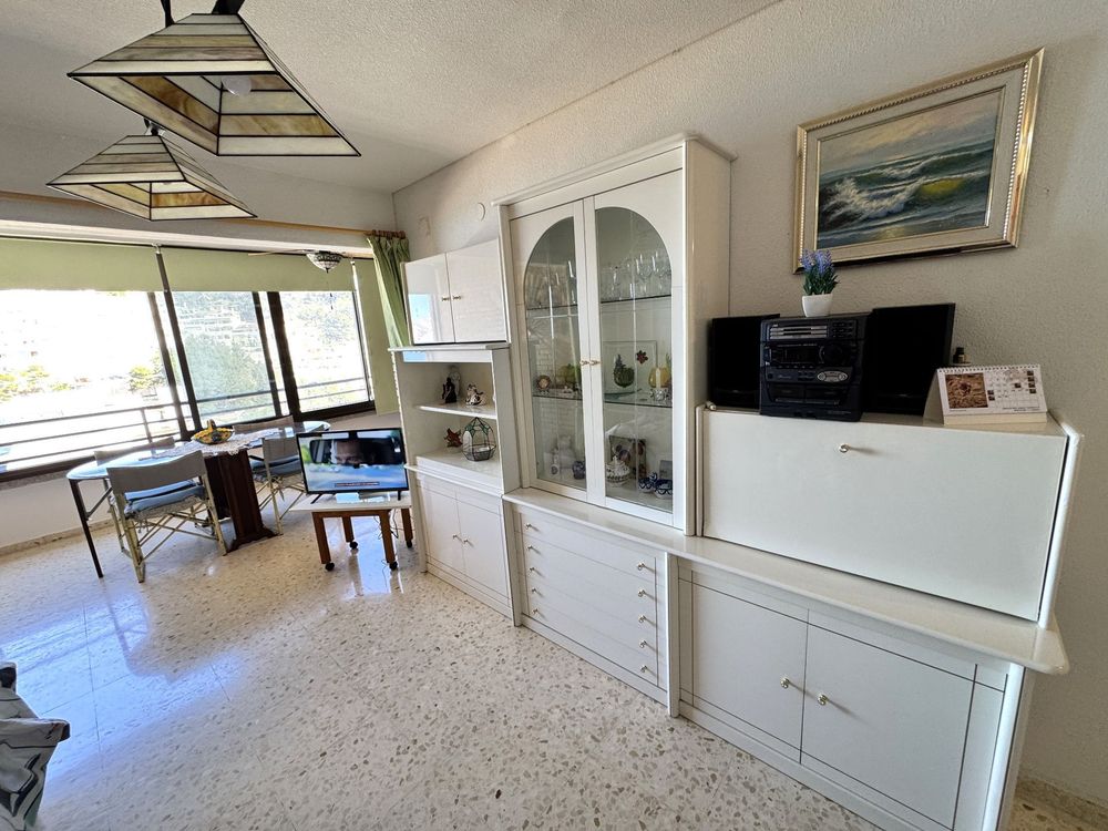 Alquiler de temporada, Andersen inmobiliaria les ofrece este bonito apartamento con vistas al mar, en la zona de la cala, 1 dormitorio con cama de matrimonio, baño completo con bañera, cocina equipada, galeria, y salon con terraza acristalada y vistas al mar muy luminoso, ademas la finca dispone de piscina, conserje y una plaza de garaje numerada., consulte disponibilidad y precio.