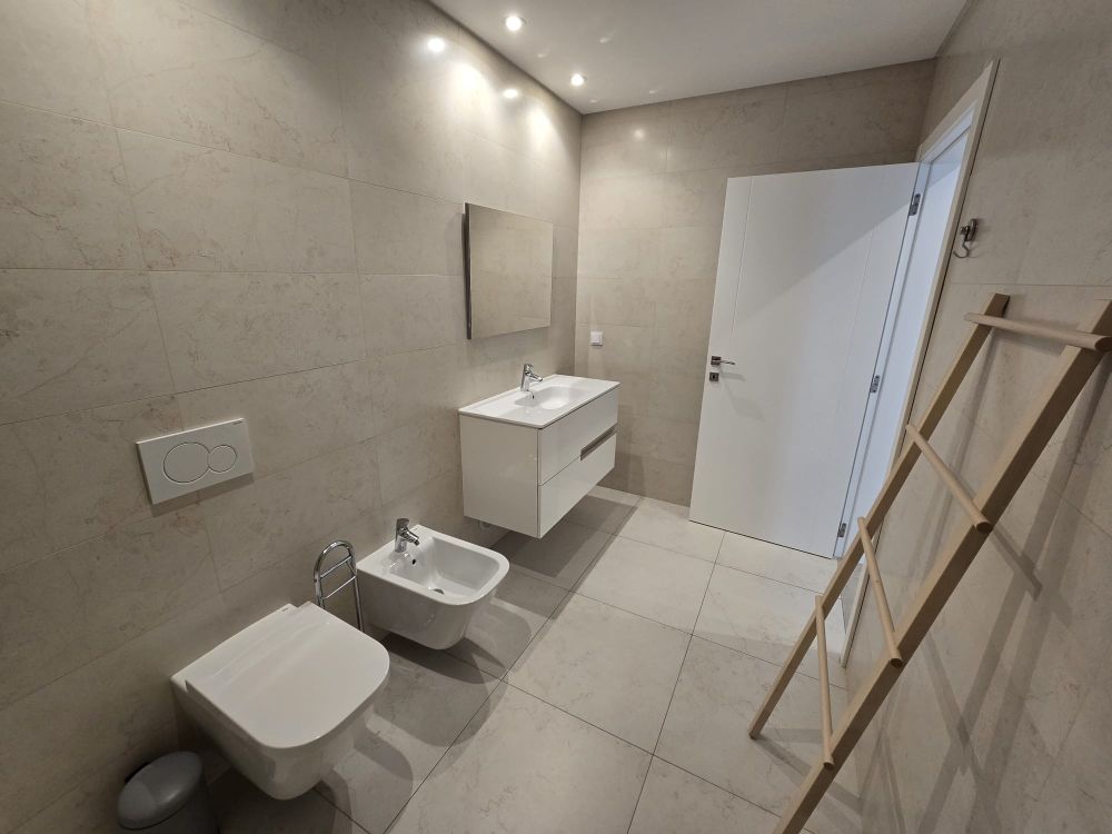 A entrada do apartamento com um pequeno hall corredor, tem de imediato á direita a casa de banho, seguindo o corredor vai dar direto ao quarto com a entrada da sala à esquerda com a cozinha em 'open space' e a sala comum. Tem acesso ao terraço pela sala ou pelo quarto.
