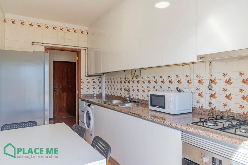 - Cozinha mobilada e equipada com mesa e 5 cadeiras, exaustor, placa, forno, micro-ondas, frigorifico e máquina de lavar roupa;