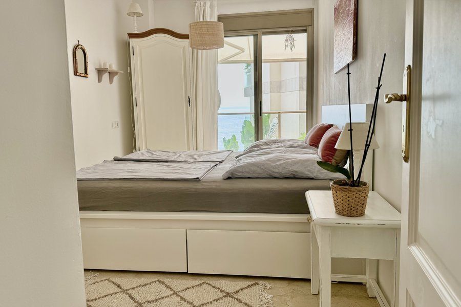 Available for temporary rental. One-room apartment with terrace in a prime location directly on Playa Major. The apartment is furnished and fully equipped, has a modern design and offers direct sea views. Ideal for those who want to enjoy the proximity to the beach and the Mediterranean flair.
