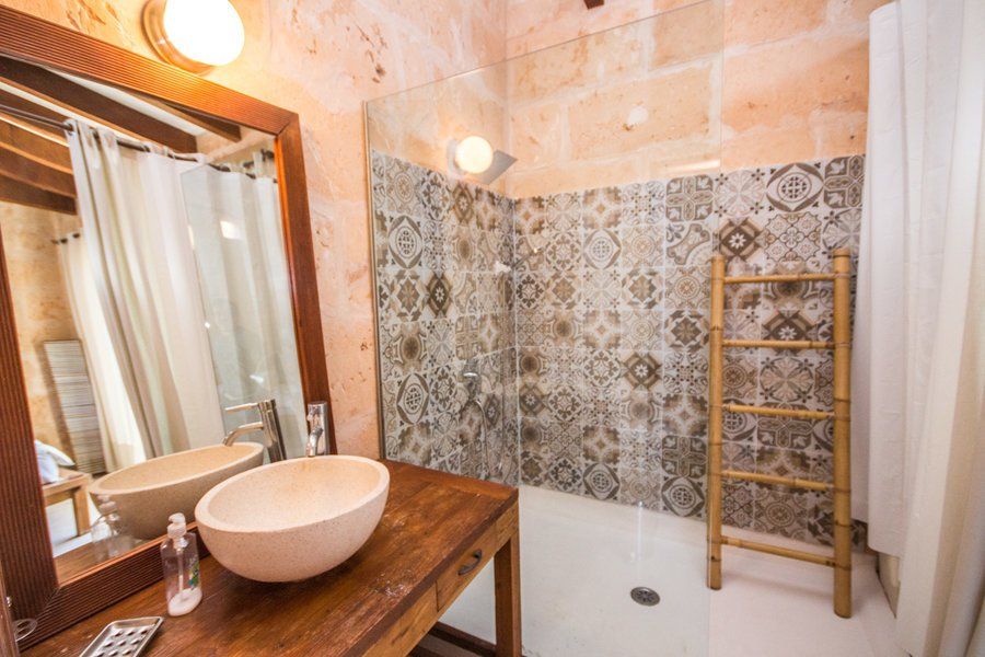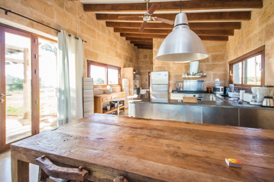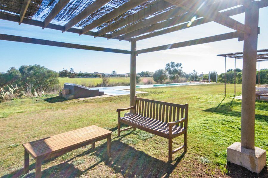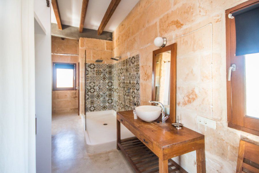 Available from November to March for 4.500 EUR per month. For a one year contract 6.200 EUR per month and upfront payment. The best of two worlds, modern architecture integrated in fantastic country landscapes, only ten minutes from the renowned white sandy beaches of Es Trenc. The villa of approximately 400 sqm is built with local materials such as mares stone and is the perfect place for entertaining, with a very bright and spacious living room with various seated areas and exits to the wonderful garden, an open kitchen with utility room. Four bedrooms, all with bathrooms en suit and private exit to the beautiful exterior where of one is located on the second floor with a private terrace and amazing views to both the island of Cabrera and the mountain Puig Mayor.