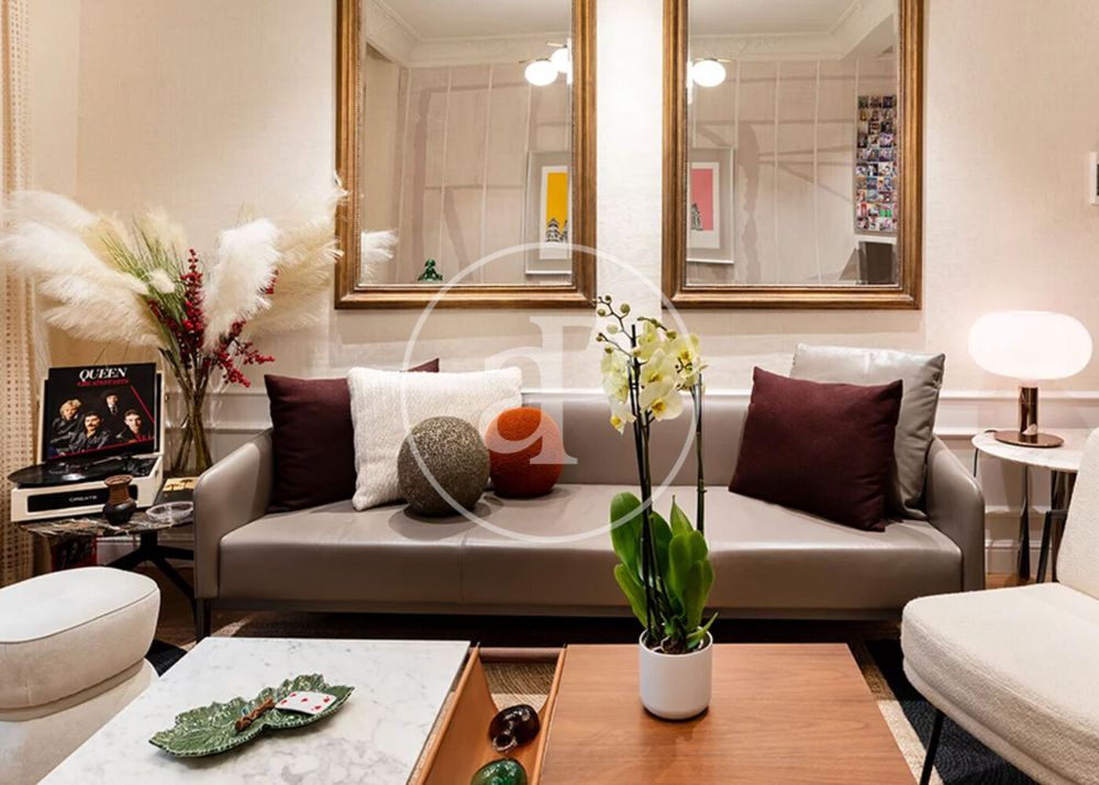 This spacious 104 m² apartment, located on the second floor of a building with elevator and concierge service, offers a modern and functional design. Its east-facing orientation allows natural light to enter through the windows overlooking Zurbano street, creating a warm and cozy atmosphere. It has three well-appointed bedrooms designed to offer maximum comfort: a master suite with a comfortable queen-size bed (1.60 x 2.00 m), a second bedroom with a double bed (1.40 x 2.00 m), and a third bedroom with a bunk bed that includes two spacious mattresses (1.40 x 2.00 m each). The apartment has two modern bathrooms with walk-in showers, both designed with contemporary finishes and high quality materials. The fully equipped kitchen features state-of-the-art appliances such as oven, dishwasher, refrigerator, freezer, ceramic hob and microwave. The elegant green marble countertop adds a refined and sophisticated touch to the space. Additional amenities include a smart TV with streaming services such as Netflix and cable channels, high-speed WiFi, central air conditioning and heating, as well as washer and dryer. For added convenience, optional housekeeping services are offered during the stay. This exclusive accommodation in Almagro is located in the Chamberí neighborhood, one of the most prestigious areas of Madrid. Its tree-lined streets and grand historic buildings offer an elegant and tranquil atmosphere. Just steps away from the Paseo de la Castellana, the neighborhood perfectly blends history, culture and modern sophistication. Can you imagine living here?
