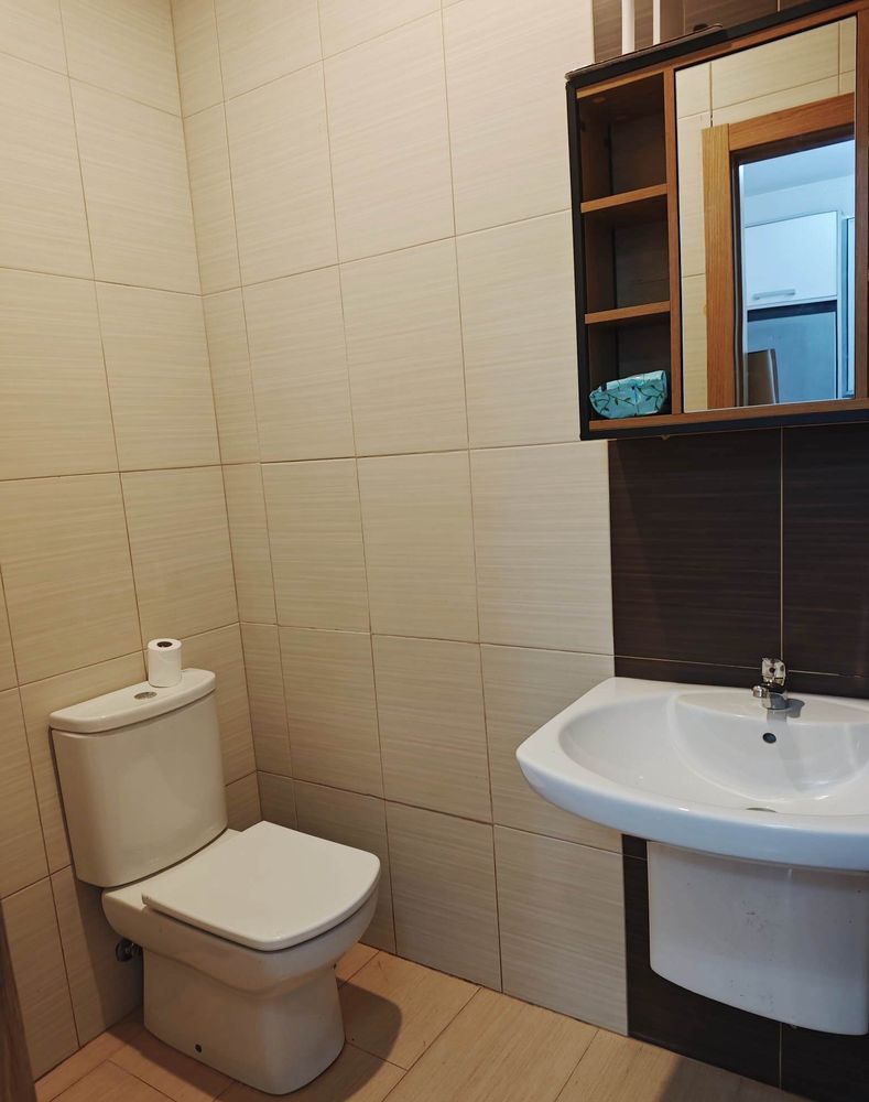 The house has 2 floors, 2 bedrooms, 2 full bathrooms with bathtubs and showers, fully equipped kitchen, living room, and terrace. A small private garden.