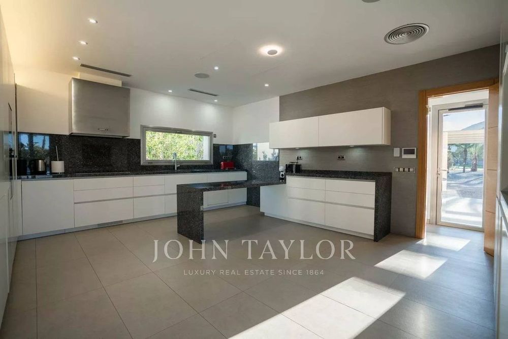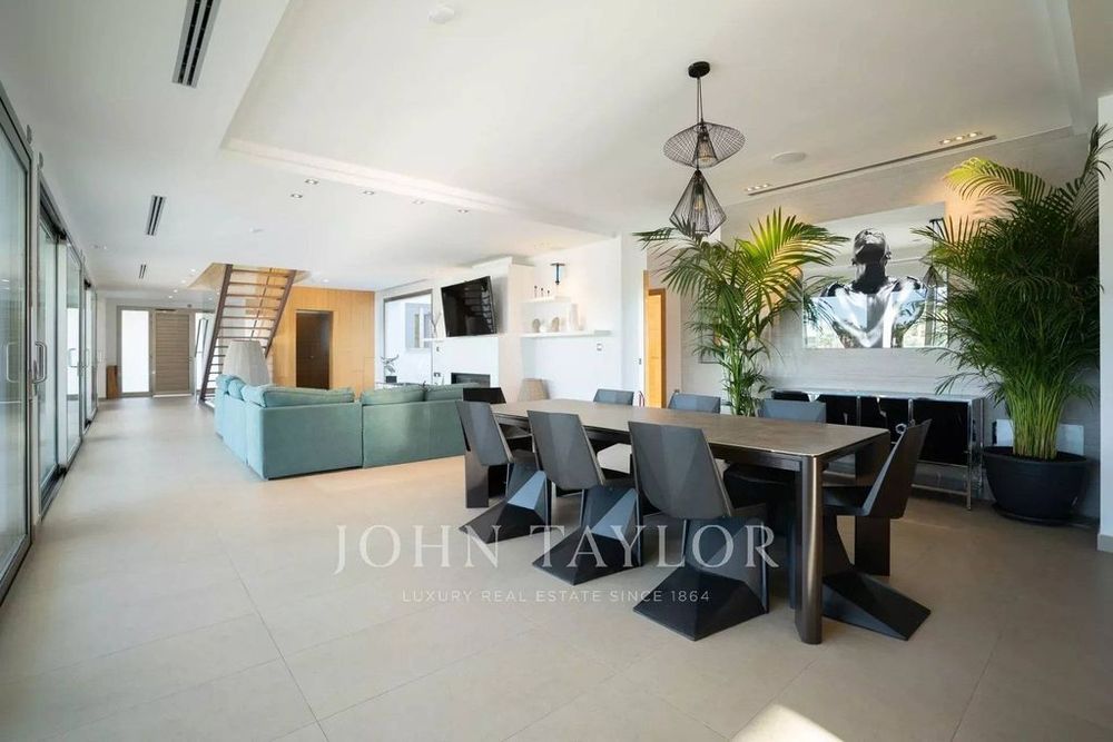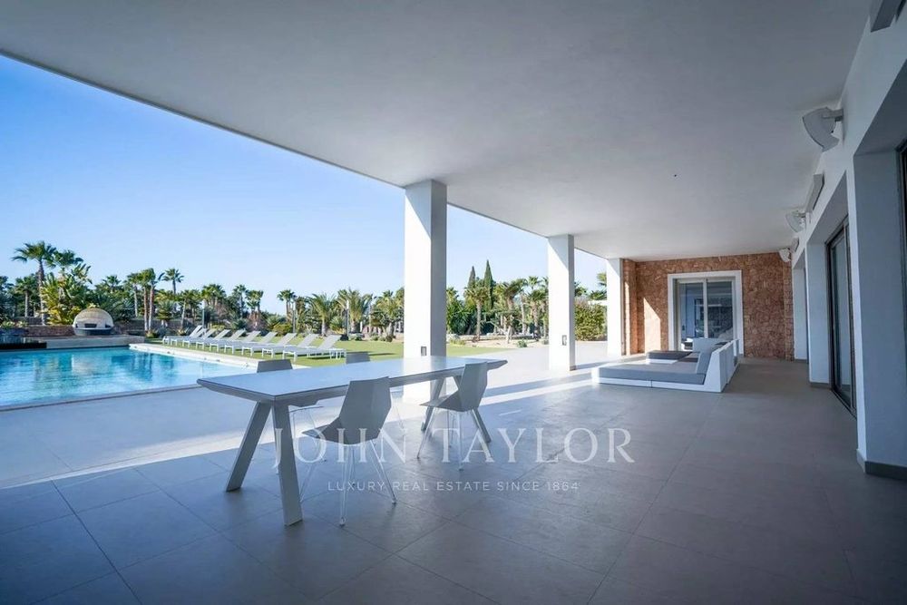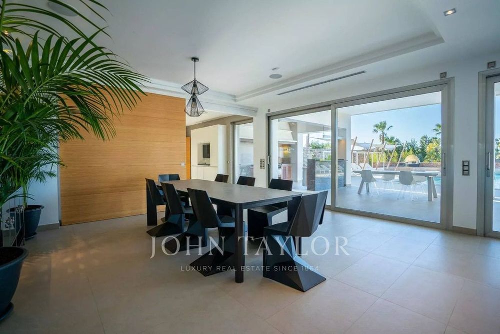 This luxurious villa is immersed in a large garden with a swimming pool and a terrace, as well as a guest house, a barbecue area, a gym and a mini club, among other amenities.