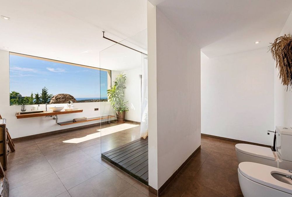 Spread across three levels, connected by a glass lift, the villa offers an expansive open-plan kitchen, dining, and living area. With seamless access to the outdoor spaces, you can effortlessly enjoy the Mediterranean climate. The east-facing 140 m2 master bedroom on the main level treats you to the mesmerizing mountain, sea, and golf views. It features a south-facing en-suite bathroom with a walk-in shower, a dressing area, and a terrace complete with an outdoor shower and a Jacuzzi.