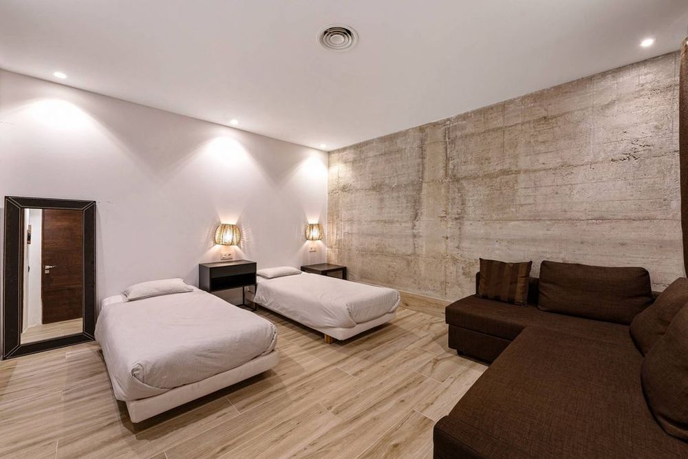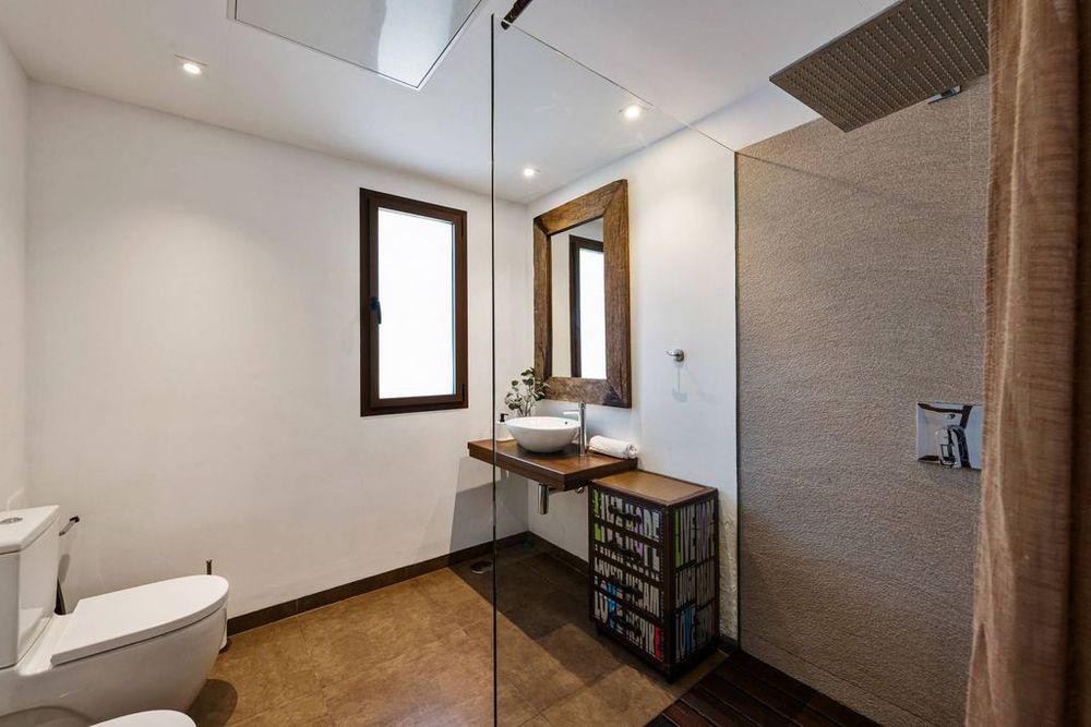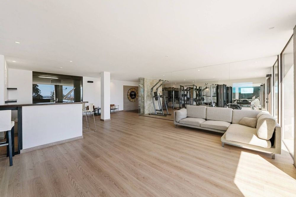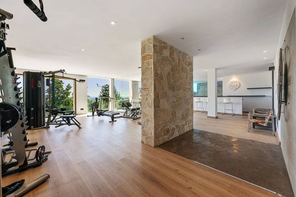 The rooftop terrace beckons you to dine, unwind, and savour the panoramic views, while the lower level boasts a 5-star fully equipped "Life-Fitness" gym, perfect for workouts, yoga, or pilates. Additionally, indulge in the bodega and garage space for 3-4 cars. Outside, the villa captivates with a magnificent heated swimming pool designed in a stunning lagoon style. To enhance your stay, enjoy the luxury of an included 8-hour staff service, ensuring your utmost comfort.
