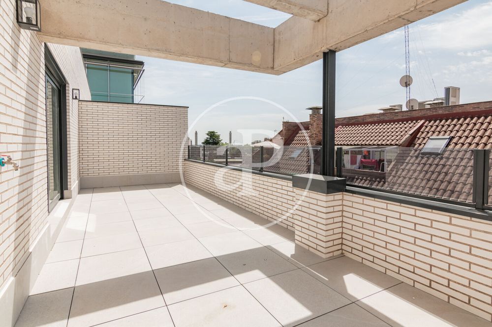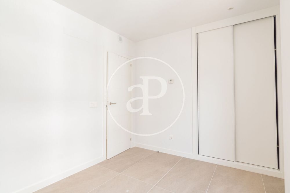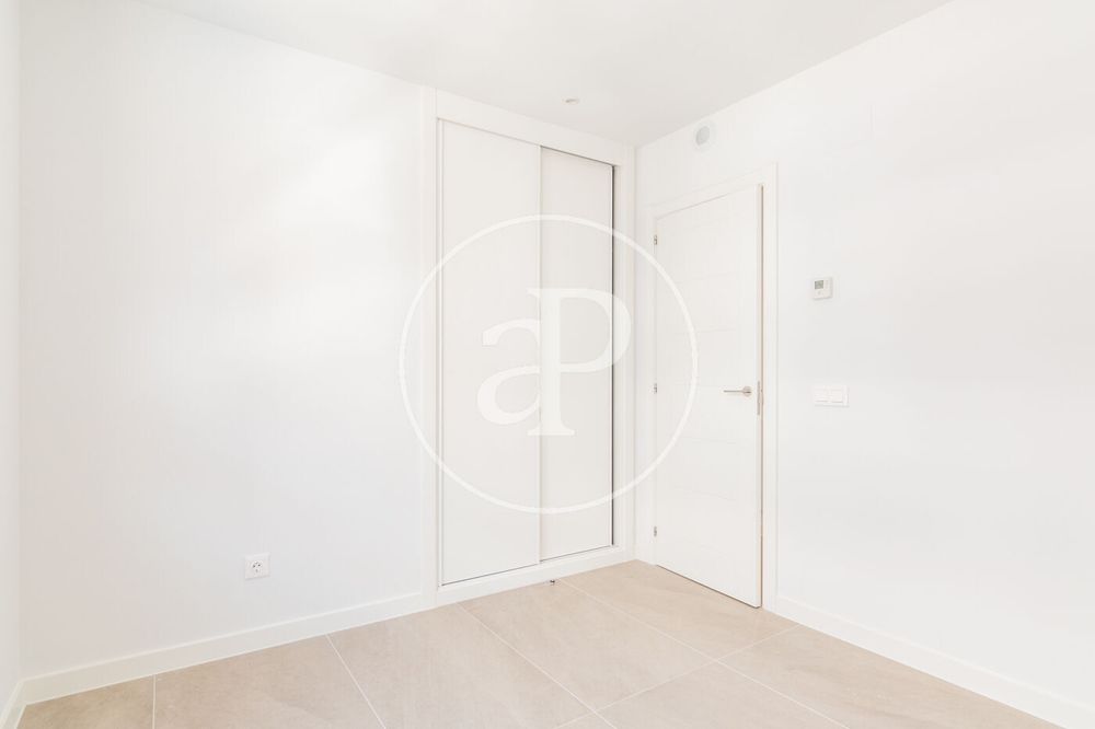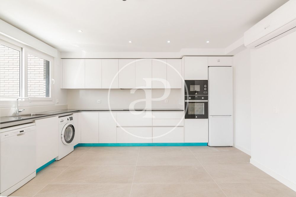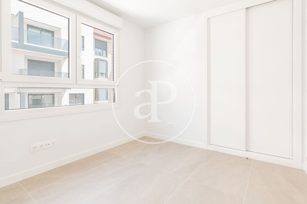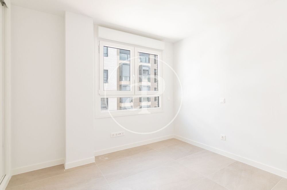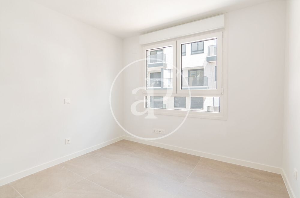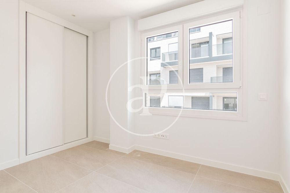 Brand New 3 Bedroom Penthouse for rent built with energy rating A. Distribution: The property is distributed as follows: an entrance hall leading to a spacious living-dining room with access to a private terrace, an independent kitchen fully furnished and equipped with high-end appliances (induction hob, refrigerator, oven, microwave, dishwasher and washing machine), plus a practical clothesline. The master bedroom has an en-suite bathroom and a spacious 3-body closet. The other two bedrooms are also spacious and have built-in closets, and there is an additional full bathroom. The property includes a parking space and a storage room. Energy Efficiency A: Committed to sustainability, the house has an aerothermal system, underfloor heating and cooling, PVC carpentry and a double-flow ventilation system, which provides an energy rating A. This guarantees a more sustainable and efficient home, with lower energy consumption and considerable savings on bills. Leisure Facilities: Enjoy your leisure time without leaving home. The property is part of a 155 m² gated community with a garden, communal swimming pool and fully equipped gym, ideal for maintaining an active and healthy lifestyle. Location: Located in a quiet and well connected area, the property is close to all the necessary services for day to day life: Shopping Malls: El Corte Ingles, Hipercor, Palacio de Hielo, Arturo Soria Plaza, Mar de Cristal, among others.