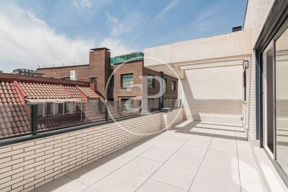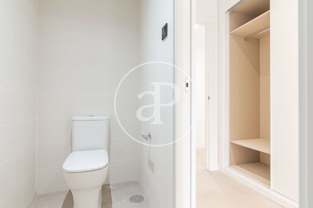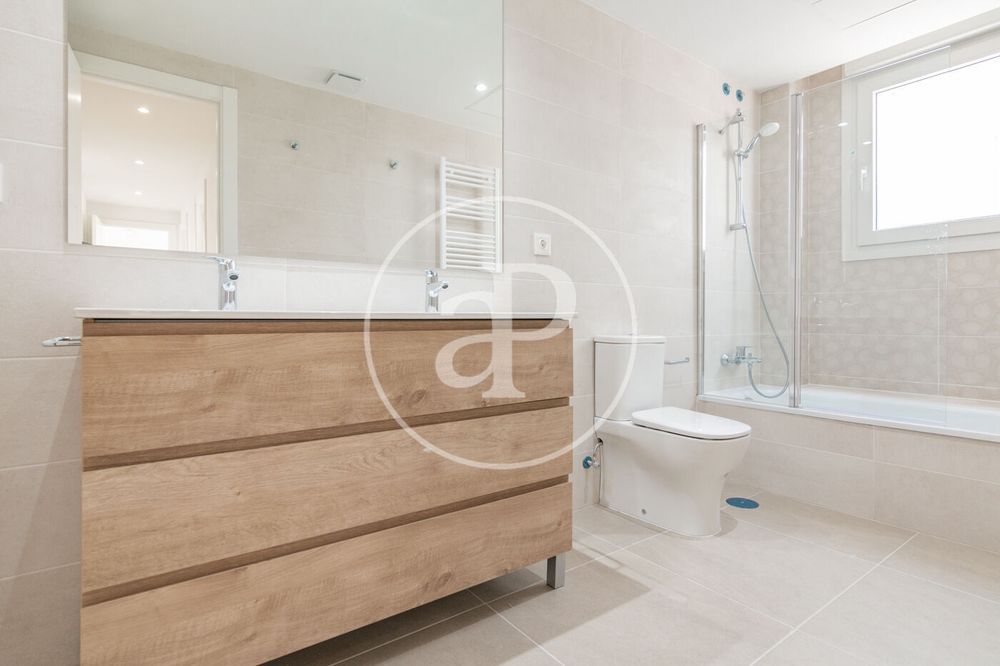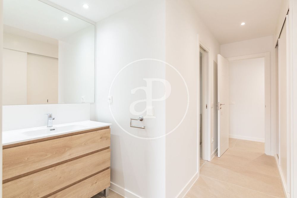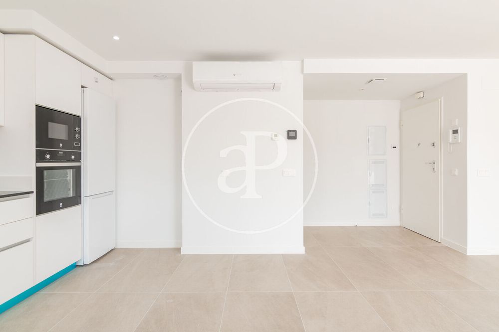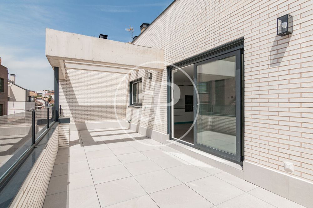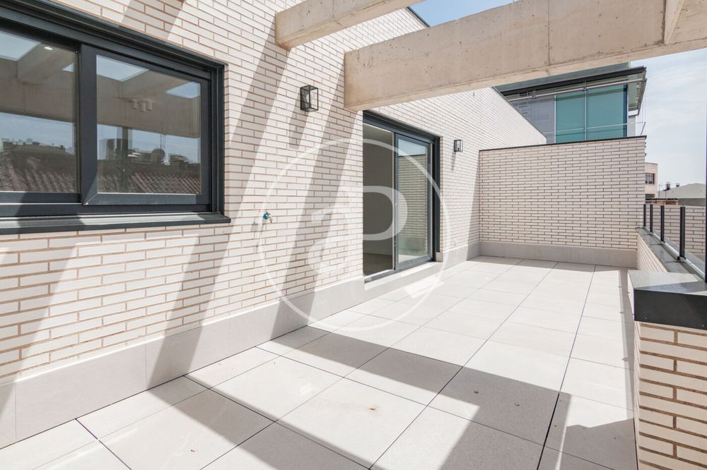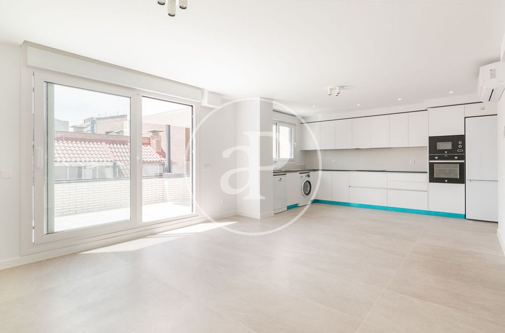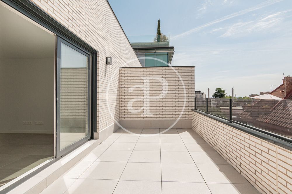 Brand New 3 Bedroom Penthouse for rent built with energy rating A. Distribution: The property is distributed as follows: an entrance hall leading to a spacious living-dining room with access to a private terrace, an independent kitchen fully furnished and equipped with high-end appliances (induction hob, refrigerator, oven, microwave, dishwasher and washing machine), plus a practical clothesline. The master bedroom has an en-suite bathroom and a spacious 3-body closet. The other two bedrooms are also spacious and have built-in closets, and there is an additional full bathroom. The property includes a parking space and a storage room. Energy Efficiency A: Committed to sustainability, the house has an aerothermal system, underfloor heating and cooling, PVC carpentry and a double-flow ventilation system, which provides an energy rating A. This guarantees a more sustainable and efficient home, with lower energy consumption and considerable savings on bills. Leisure Facilities: Enjoy your leisure time without leaving home. The property is part of a 155 m² gated community with a garden, communal swimming pool and fully equipped gym, ideal for maintaining an active and healthy lifestyle. Location: Located in a quiet and well connected area, the property is close to all the necessary services for day to day life: Shopping Malls: El Corte Ingles, Hipercor, Palacio de Hielo, Arturo Soria Plaza, Mar de Cristal, among others.