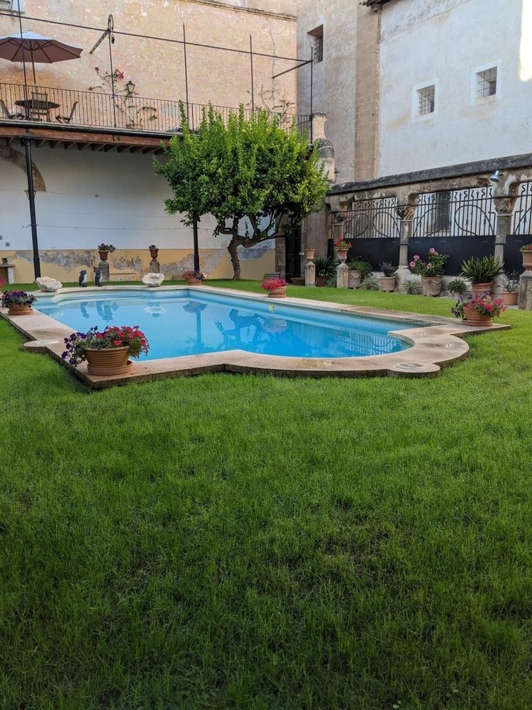 Piscina y jardín en el interior del casal, un oasis de naturaleza en pleno Casco Antiguo