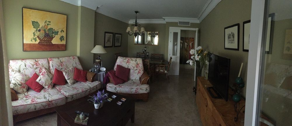 Precioso piso en la zona de Puerto deportivo de Estepona. Vivienda consiste de 3 amplios dormitorios y 2 cuartos de baño, uno en el suite. Muy luminoso y espacioso, completamente amueblado. Espectaculares vistas al mar y a la piscina comunitaria.