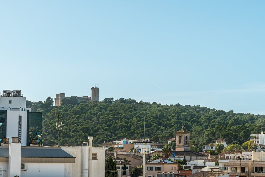 Available for temporary rental. Discover this stunning renovated penthouse in the heart of Palma, offering breathtaking views over Palma Tennis Club. This exclusive city retreat has undergone a complete high-end refurbishment, combining modern elegance with comfort for the ultimate urban lifestyle. This penthouse features 75 sqm of stylish interior space, including an open-plan kitchen, dining, and living area centered around a double-sided gas fireplace. The apartment offers two well-appointed bedrooms and a luxurious bathroom, designed with high-quality finishes. One of the standout features is the expansive 75 sqm private terrace, seamlessly connected to the kitchen for an exceptional indoor-outdoor living experience. This sun-drenched space is perfect for alfresco dining, relaxation, and entertaining, with ample storage options. Located in a prime Palma location, this penthouse provides quick and convenient access to top restaurants, premium shopping, international schools, medical services, and world-class sports facilities. Additional perks include a parking space and the property comes complete with central A/C, together with the fireplace guarantee the perfect year-round temperature. Experience luxury living in one of Palma’s most sought-after locations.
