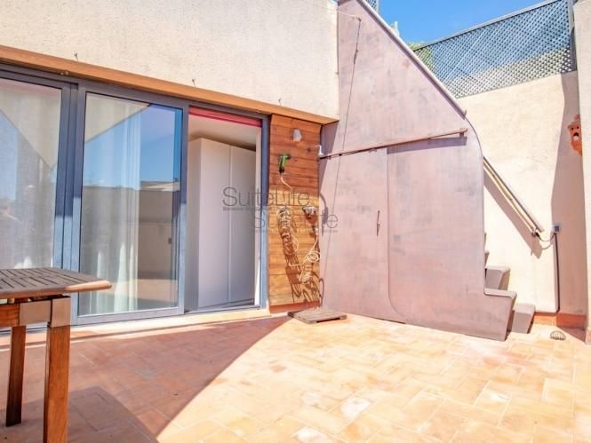 This is a beautiful duplex attic w/ duplex terrace! It has about 55m2 + 35m2 terrace (there are actually 2 terraces). The flat has 1 sunny exterior double bedroom and 1 full bathroom w/ bathtub. There is a breathtaking 2-level terrace w/ 2 tables (1 on each level), a shower, plants, & unforgettable views of Montjuic & the city. There is an American-style kitchen w/ fridge, freezer, oven, stove, dishwasher, microwave, toaster, all plates, dishes, pots, pans, utensils, etc... The flat is fully furnished, renovated, & equipped. It’s a 4th floor real WITH lift. The flat has tons of natural light! Heating, hardwood flooring, and sofa bed. Excellent location on Rambla Raval (4 minutes walking to metro l2 ’’sant antoni’’ & l3 ’’liceu’’). Parking is optional (90€/MONTH).