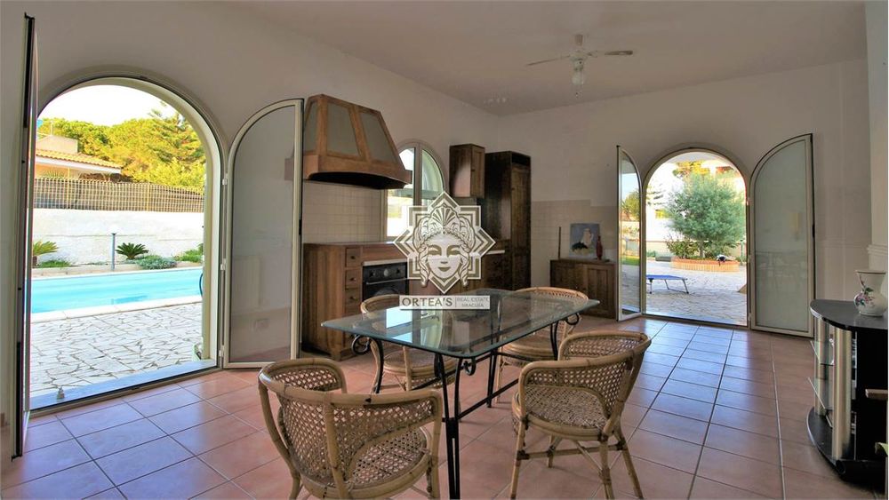 Proponiamo affitto una grande villa con piscina e dependance accessoria, per un massimo di tre mesi consecutivi, ad appena 150 metri dalle spiagge sabbiose in una delle più rinomate contrade residenziale e turistica della provincia di Siracusa ma anche della Sicilia. La Villa è disposta su tre livelli con ottima esposizione e per questo gli ambienti sono molto luminosi e ariosi. Il primo livello al piano terra dispone di un ingresso su ampia zona living soggiorno, una grande cucina abitabile; una camera da letto, un locale bagno e un utile ripostiglio; da una bella scala interna si accede al secondo livello con tre camere ognuna con il suo locale bagno con doccia, attraverso un altra scala interna si raggiunge la mansarda abitabile con locale bagno con doccia. il secondo e terzo livello dispongono di un terrazzo con vista mare. La grande dependance dispone di una grande zona giorno, un cucina semi abitabile, una camera da letto e un locale bagno. la zona esterna è caratterizzata da una piscina attrezzata. Altri vani accessori: doccia esterna con spogliatoio, locale lavanderia e un locale attrezzi. Il giardino è molto ben curato con diversi alberi da frutto e da ornamento. La villa risulta regolare urbanisticamente. Il prezzo in proposta si intende solo per periodi con contratto transitorio non superiore a tre mesi a partire da Gennaio 2022.